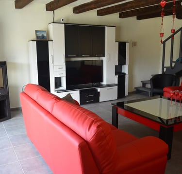 De gezellige woonkamer is van alle gemakken voorzien en vormt het hart van het huis. Geniet hier van comfort, ontspanning en samen zijn, terwijl je uitkijkt op het prachtige omringende landschap van Balkanski.
